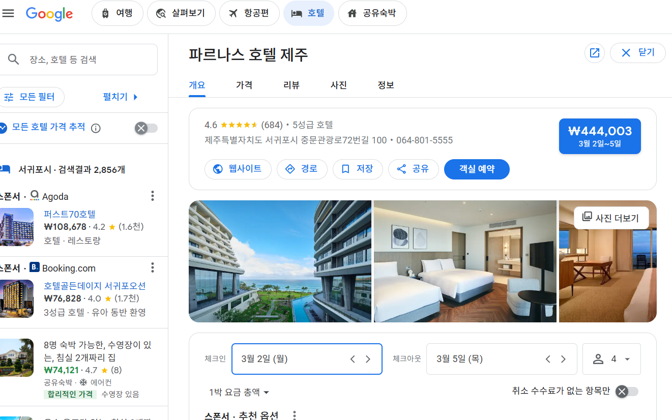 ② 예시 메세지 입력 : "다음 주 제주도 4인 가족 숙소 중 평점 4.5 이상인 곳 3개 리스트업하고 예약 페이지까지 띄워줘"